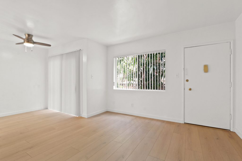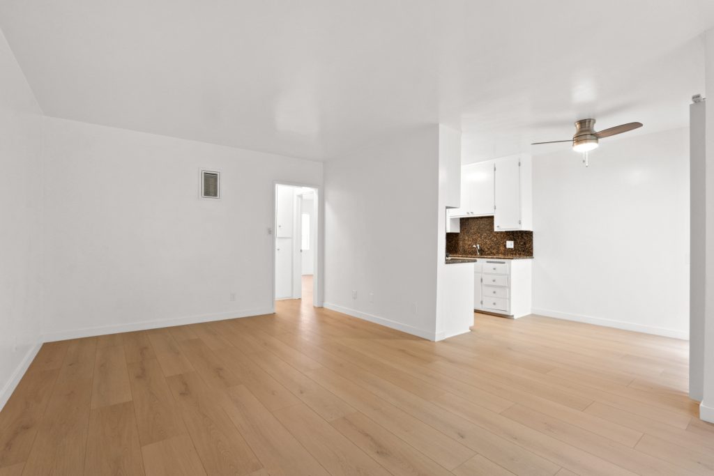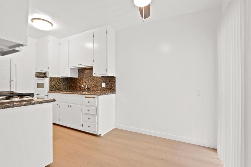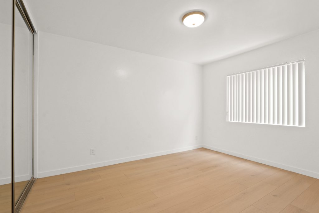 Unique opportunity to live in a lower 2 bedroom apartment in the heart of West LA, near Santa Monica Blvd. Features LVT floors throughout, granite counters, a patio, and good closet space – spacious and functional layout! Must see! One parking space included. Shared laundry room onsite. Fridge included. Approx. 1000 sf.