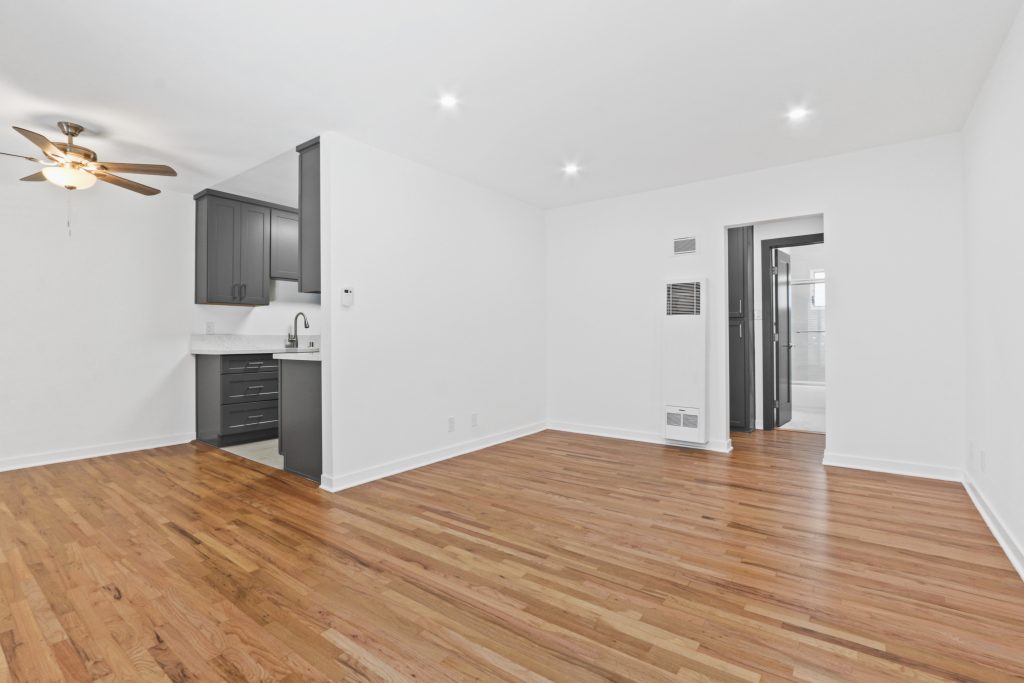 Features amazing hardwood floors, remodeled kitchen with quartz counters, stainless steel appliances including a dishwasher, microwave, recessed lighting, and more! Custom tiled bathroom. Good closet space. Fridge included. Parking space is NOT included. Shared laundry room onsite. Approx. 600 sf.