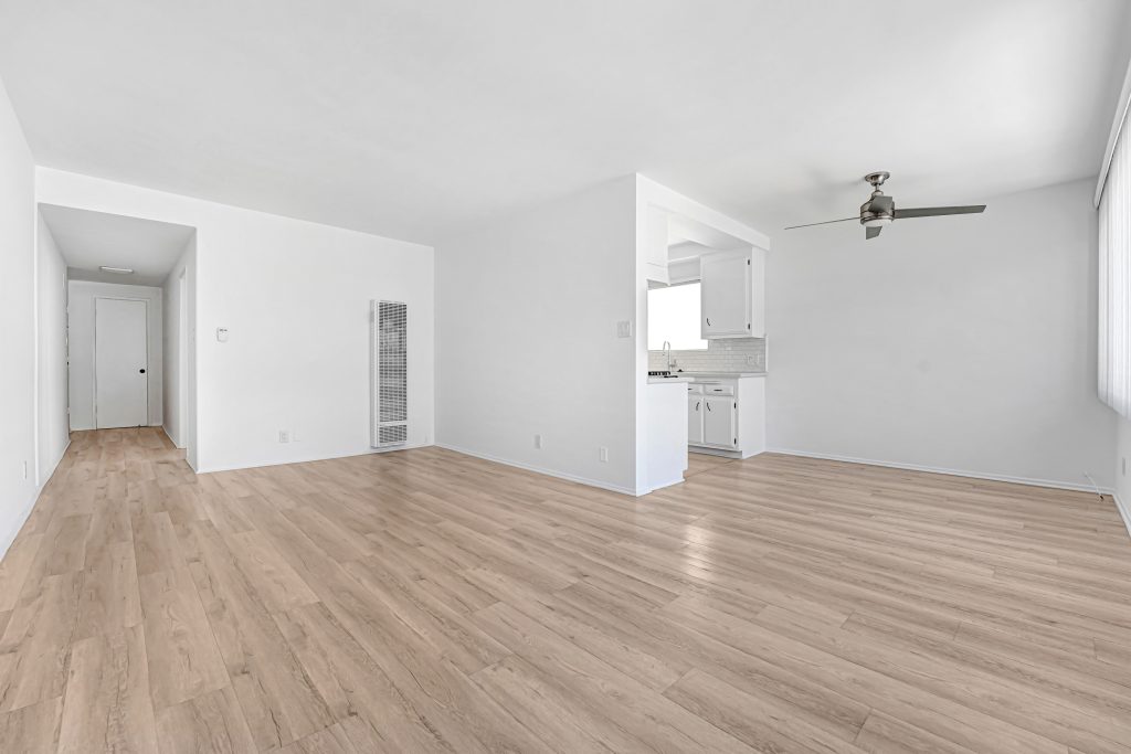 Live 5 blocks to the ocean and the edge of the bluffs AND just steps to Montana Ave in beautiful Santa Monica! Enjoy a bright, upper 1 bedroom apartment featuring white kitchen with quartz counters, stainless steel appliances, and custom floors and fixtures. The updated bath is bright white with quartz counters and custom tiling in the shower/tub. Spacious and convenient layout. Must see! Good closet space. Fridge included. One parking space included. Shared laundry room onsite. Approx. 600 sf.
